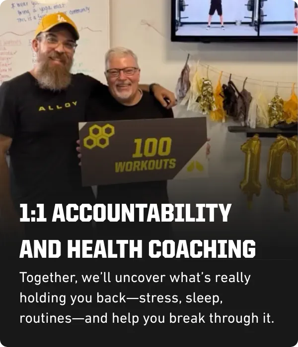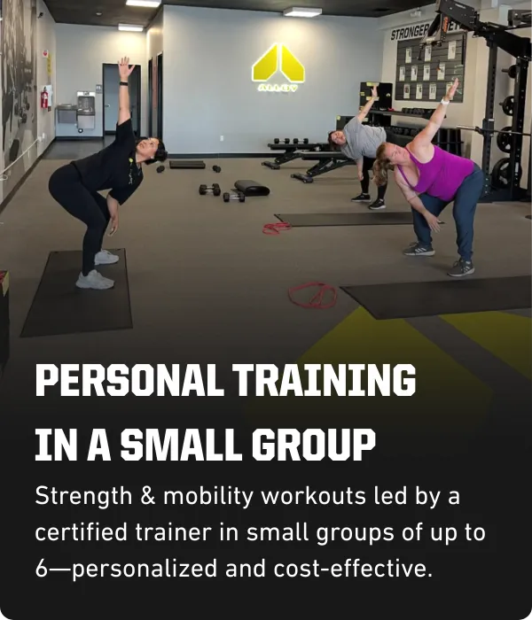 Unlike crowded classes or impersonal gyms, Alloy offers expert-led small group personal training in a welcoming, age-appropriate environment. You’ll get individualized attention, accountability, and real results—without feeling like you’re on your own.